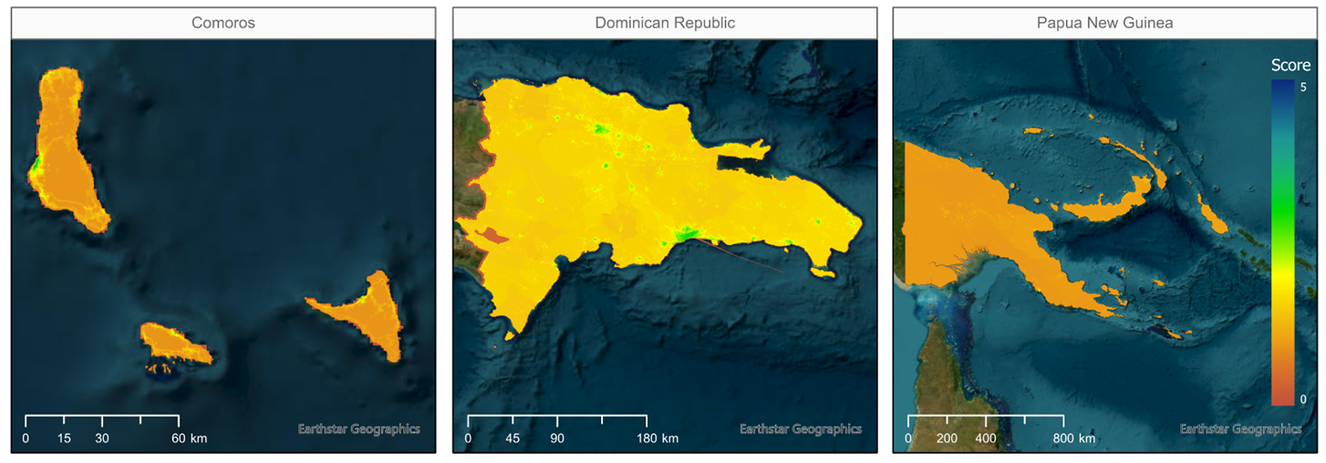 The GEOE3 was tested in Saint Lucia to assess its functionality. The selection of this country was strategic, considering its varied geographic region, size, population densities, and data availability. Testing the GEOE3 across such a broad range of conditions ensured that its usefulness, applicability, and functionality in different contexts could be accurately tested. The findings and insights derived from the GEOE3 implementation are documented in the Implementation Report, accessible through the following link: Implementation Report St. Lucia