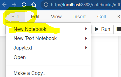 To create a new blank notebook you must select from the Jupyter Notebook menu