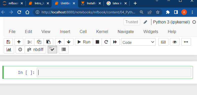 Fig. 1.2 A newly created Jupyter Notebook session#
