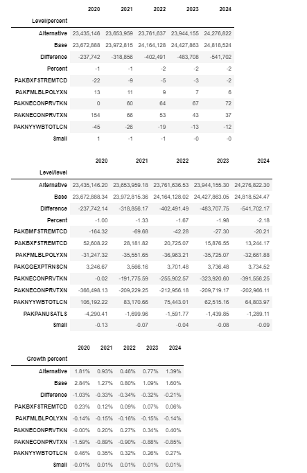 2.12.5. Similarly the impacts on different variables for one year can be shown#