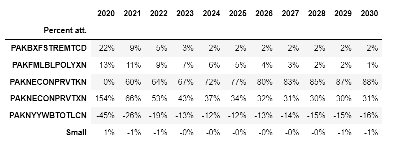 A classic query is to understand what is driving changes over time. The time_att=True option quantifies the impact of changes over time in the LHS variables on changes in the dependent variable over time using data from the lastdf DataFrame.