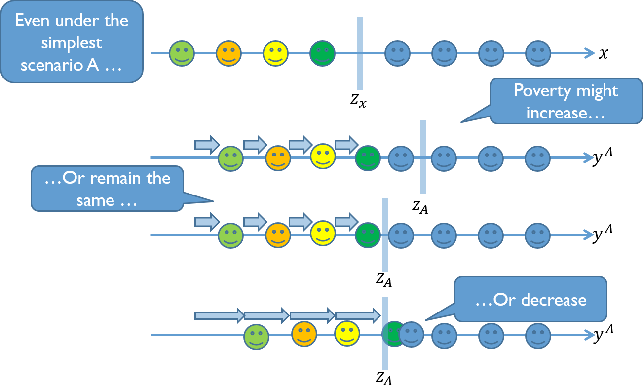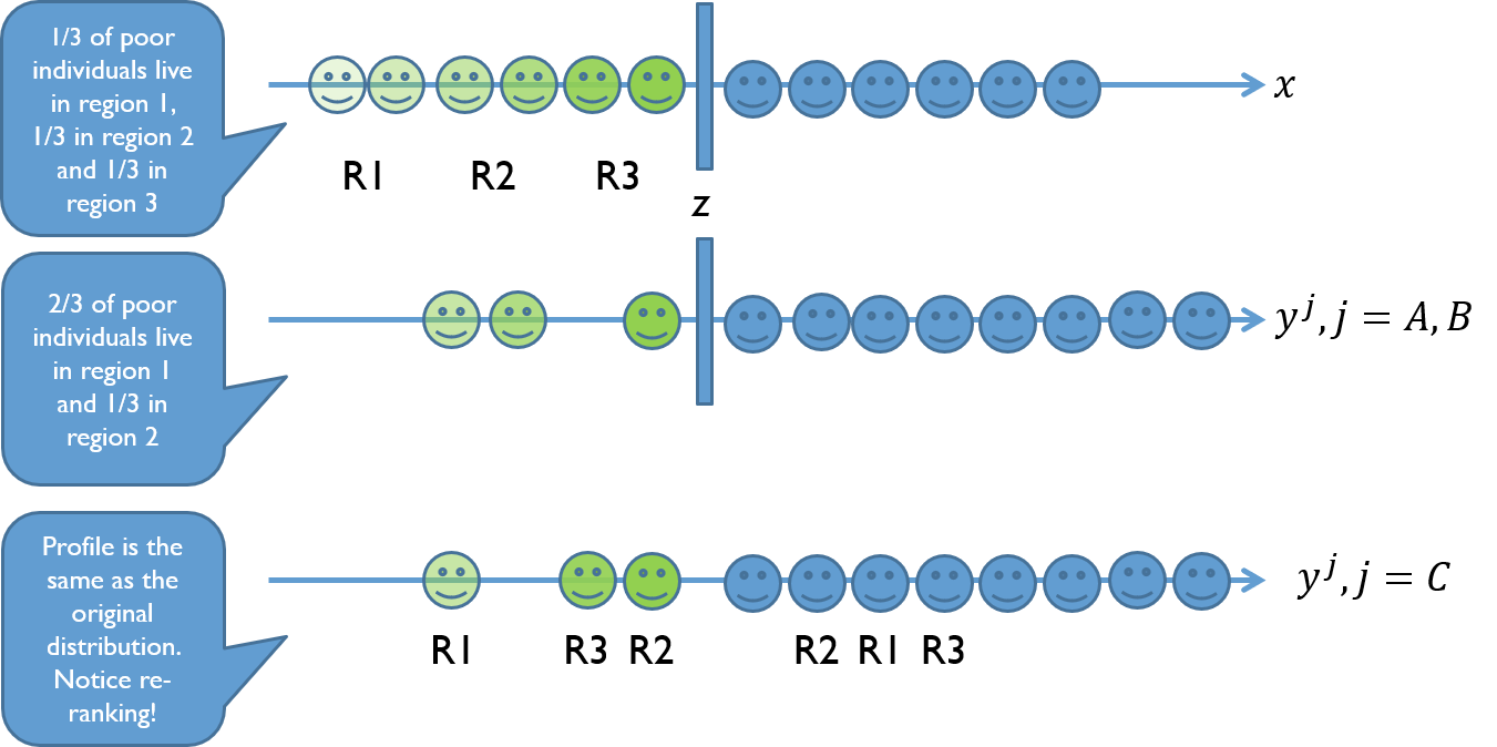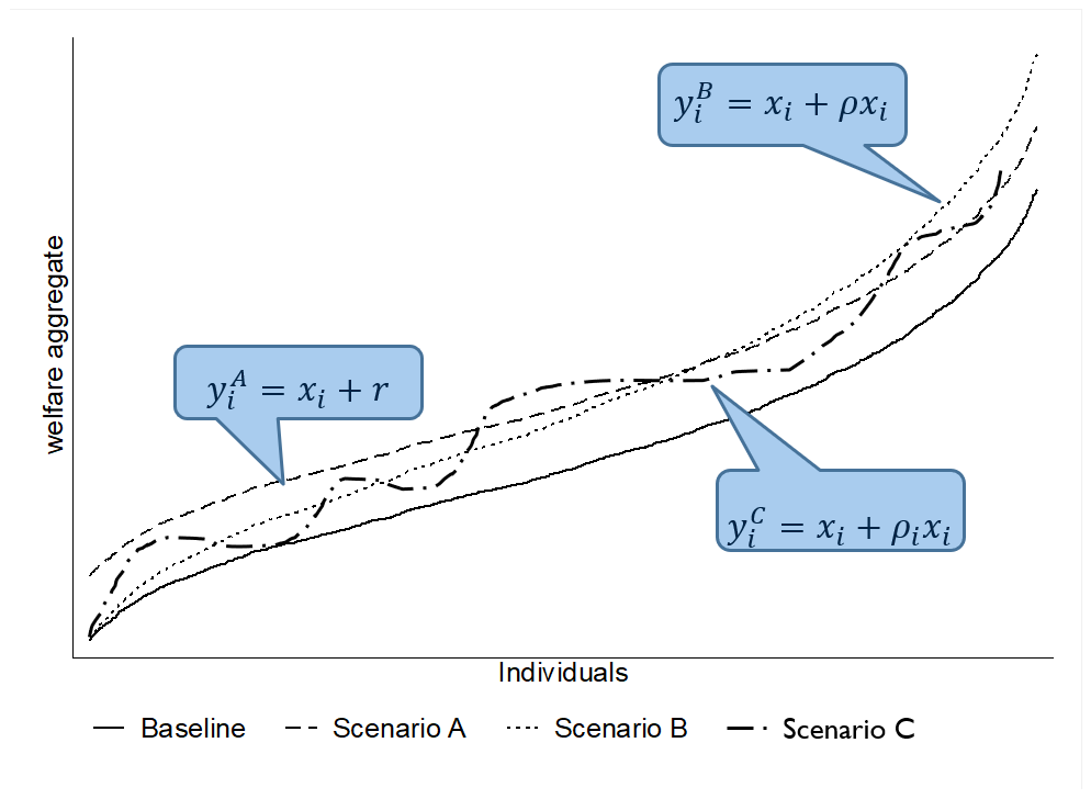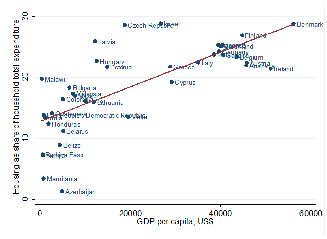 class: center, middle, inverse, title-slide # Poverty measurement ## Housing ### R.Andres Castaneda (based on the slides of many others that teach this class before me) ### The World Bank ### 2019-07-17 --- # Outline - Key References - WHy is housing relevant? - Theoretical justification for imputing rents - Different approaches to imput housing flow of service - Distributional Impacts --- layout: true # Key References --- Deaton, A., and S. Zaidi. 2002. "Guidelines for constructing consumption aggregates for welfare analysis." _LSMS Working Paper_ No. 135, Balcázar, C. F., Ceriani, L. , Olivieri, S. and Ranzani, M. (2017), Rent‐Imputation for Welfare Measurement: A Review of Methodologies and Empirical Findings. _Review of Income and Wealth_, 63: 881-898. doi:10.1111/roiw.12312 --- Deaton, A., and S. Zaidi. 2002. "Guidelines for constructing consumption aggregates for welfare analysis." _LSMS Working Paper_ No. 135, .red[Balcázar, C. F., Ceriani, L. , Olivieri, S. and Ranzani, M. (2017), Rent‐Imputation for Welfare Measurement: A Review of Methodologies and Empirical Findings. _Review of Income and Wealth_, 63: 881-898. doi:10.1111/roiw.12312] --- layout: false # Why is housing relevant? .pull-left[ ### Dominant component of total income  ] .pull-right[ ### Share of housing consumption increases with welfare levels  ] --- ## The essence of the problem ### In theory - The utility is the value of the _flow of services_ from occupying the dwelling rather than the expenditure for purchase it over the period of analysis - If rental markets worked perfectly and all households rent their dwellings, the value of the _flow of services_ is easily approximated by the value of the rent they pay. -- ### However… - Many households own their dwellings, So they also implicitly receive a _flow of services_ that is equivalent to value of the utility that owning the property represents for them. - In other cases, households receive housing free of charge or at subsidized rates by their employer, friends, relatives, government or other entities (non-market tenants). --- # Few housholds rent their dwelling  --- ## Theoretical justification for imputing rents - Welfare measure (i.e., expenditure) must be consistent accross households in order to make comparisons among themselves -- - Including the _expenditure_ in rent by tenants and not the _flow of service_ received by owners overestimate the welfare of tenants. ??? Imagine two identical households with the same consumption pattern. --- layout: true ## Different approaches to imput housing flow of service (i.e., imputing rent) --- ### .blue[Self-assessment] Use the value reported by owners and non-market tenants when they answer "if you rented this dwelling, how much would you pay per month?" --- ### .blue[Econometric and statistical methods] 1. Find the best model for rents paid by tenants on the basis of observable dwelling characteristics 2. Apply the same model to home owners and non-market tenants --- ### .green[Capital market approach] - you could either; - **Rent-to-value**: Find the capitalization rate from rents and market value of the dwelling; _or_, -- - **User cost**: Collect information on the return rate for housing and operating costs - then, apply the capitalization rate to the value of the owners occupied dwelling --- ### Payment approach - use information about the out-ot-pocket expenditure faced by households. **For owners** it would be the mortgage, interest payments, taxes, insurance, maintenance and repairs. --- ### External sources - Other household surveys, adminustrative register, newspaper or internet offer notices, multiple listing datasets, motgage transctions, key informat evaluations. --- layout: false ## Different approaches to imput housing flow of service (i.e., imputing rent) .blue[ ### Self-assessment - Use the value reported by owners and non-market tenants when they answer "if you rented this dwelling, how much would you pay per month?" ] .blue[ ### Econometric and statistical methods 1. Find the best model for rents paid by tenants on the basis of observable dwelling characteristics 2. Apply the same model to home owners and non-market tenants ] --- ## Self-assessment - This approach is based on data collected about owners’ estimates of a fictitious market rent. - Homeowners are asked to estimate how much they would pay if they were renting their home - Assumption: owners can estimate rental equivalences - This should be less problematic in regions where rental market is active and well developed (Lanjouw, 2009) - But, owner-occupiers may over-estimate the true rental value of their dwelling given the affinity to their property or neighborhood (owner pride factor) - Should be treated with caution and should be tested --- ## Econometric models - Hedonic model - Theory and generi form - Semi-log - Heckman Selection - Stratification --- layout: true ## Hedonic models - Theory --- - Utility derives from attributes or characteristics of goods and not from goods per se (Lancaster, 1966) -- - In equilibrium, economic agents observe the prices of differentiated products and specific amounts of characteristics associated with them. This reveals the _implicit prices for the different characteristics_ (Rosen, 1974) --- Housing can be considered as a composite commodity: `$$R_h = R(\mathbf{L}_h, \mathbf{S}_h, \mathbf{N}_h) = \mathbf{R}(\mathbf{X}_h)$$` where, - `\(\mathbf{L}_h\)`, Location of dwelling - `\(\mathbf{S}_h\)`, Structural Characteristics - `\(\mathbf{N}_h\)`, Neighborhood -- However, - No consensus about the specific explicit form the hedonic price function might take - The relation between rent and characteristics should be non-linear ??? Chars: home or apartment, type of construction, age of the building, dimensions and number of rooms Neighborhood: quality of school, accessibility to public transport, proximity of streets, crime rates, poverty rate, traffic congestion, etc. --- - If we have `\(X_m\)` obser