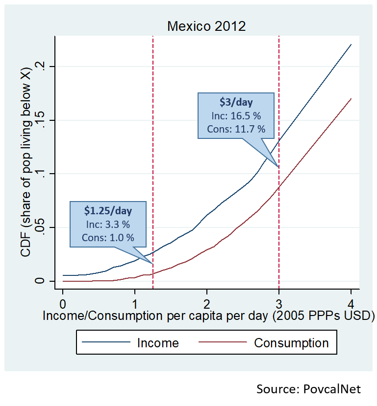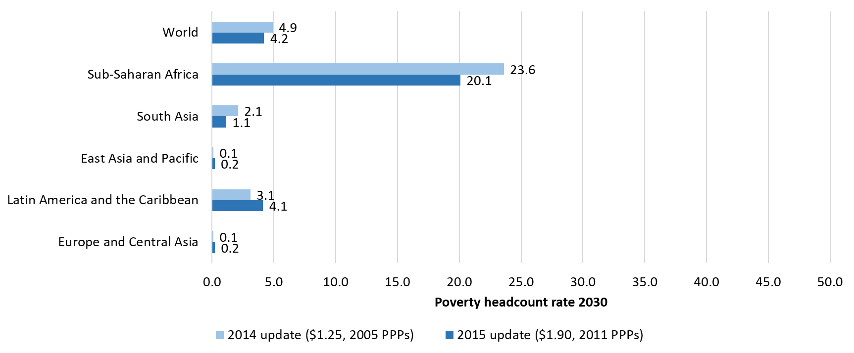 class: center, middle, inverse, title-slide # Global Poverty ## Poverty measurement workshop ### R.Andrés Castañeda (based on the slides Dean Jolliffe and Espen Prydz) ### The World Bank ### 2019-07-18 --- ## Measuring Global Poverty: Basic Approach followed by the World Bank Focus tends to be on the international poverty line, but ... -- There are two main ingredients, 1. Indicator of wellbeing (income or consumption) 2. Selection of poverty line, expresses in common currency -- - These ingredients are aggregated to a summary of index for a _common_ year - Global headcount of extreme poverty in 2012 (Ferreira et al., 2015) - Key Assumptions - Measure of wellbeing comparable across countries and over time - Common poverty line is comparable across countries and over time. --- ## National household surveys – foundation of the global poverty estimate - NSOs collect household survey data for national poverty policies, not global poverty measurement. - Typically reflecting country context, some countries collect data on consumption, expenditure, and/or income - Data is collected at the household level, differing adjustments for adult-equivalence (and/or economies of - scale) - Some efforts to standardize - Some regional efforts to bring more uniformity of instrument - WB staff often ‘teach’ Deaton-Zaidi guidelines for consumption - PovCal requests data in per-capita terms - But, important comparability issues remain… --- ## Comparability issue: Income and consumption .pull-left[ - Income and consumption are different concepts (savings, volatility) - Surveys often have zero incomes; seldom zero consumption. - Zeros exert significant influence on extreme poverty measures; more so as goal of eliminating poverty nears. - Example: Poverty in Mexico 2012 (at $1.25/day, 2005 PPPs) was 3% based on income, 1% based on consumption ] .pull-right[ <img src="./img/mexico.png" width="1025" style="display: block; margin: auto;" /> ] --- ## Comparability issue: How consumption is measured differs (both between and within countries) - Differences in questionnaire affect consumption: - Diaries vs. recall - Nonfood varies (some include rent, durables, and/or health; others do not) - Count of pre-coded food items affects aggregate - Recall frame affects responses (e.g.,. Telescoping, “Great Indian Debate”) - Many other important differences: Timing of fieldwork, Training, Supervision, Cleaning/editing rules; - etc. ??? - INDIA EXAMPLE: Since 1950s - India used uniform 30-day recall period (URP), then switched recall frame - twice. In 2009, switched to “modified mixed reference period” (MMRP), short for some, long for others. - MMRP-based consumption gives poverty rate of 12 percent for 2011/12. - URP results in poverty rate of 21 percent for 2011/12 (used in WB estimate) - Difference of 109 million poor people in India’s and global estimates. --- ## Comparability (cont.): Measurement methods differ .pull-left[ <img src="./img/recall_period.png" width="1140" style="display: block; margin: auto auto auto 0;" /> ] .pull-right[ - Household consumption surveys vary widely (over time & countries) - Beegle et al. (2012) provide experimental evidence on the effect - Exact same instrument except increase recall period - => 12% drop in avg consumption - => 8 point (%) increase in pov - Same recall period, but long list collapsed to comprehensive groups => 24% drop in avg consumption => 32% drop in shared prosperity - Research can inform questionnaire design & provide bridges across otherwise non-comparable data ] --- ## Complementary data needed to estimate poverty Household surveys are necessary but not sufficient. We also need - Purchasing power parity (PPP) indices -- - Population (census) data -- - Inflation and national accounts growth (consumption or GDP) ??? PPP: Make poverty lines and welfare comparable across countries - To estimate total number of poor - population frame for survey sample - Inflation data to keep measures of wellbeing in real terms - NA data to "line up" surveys into reference years --- ## Data Details: Consumption vectors scaled to common reference year .pull-left[ - Most countries do not collect household surveys on annual basis, need to line up data to common point in time. - If a survey is not available in the reference year, closest survey(s) are extrapolated to reference year using NAS growth rates. - GDP growth used in AFR, Private Consumption Expenditures used in other regions. ] .pull-right[ <img src="./img/reference_year.png" width="816" style="display: block; margin: auto auto auto 0;" /> ] --- ## Global prospects for 2030 <img src="./img/forecast_2030.png" width="2300" style="display: block; margin: auto auto auto 0;" /> --- ## Data and Assumptions - Are the measures of economic wellbeing comparable? - Is the value of the international poverty line ($1.90) comparable across countries? - Is the value of the $1.90-line comparable with the previous international poverty line ($1.25)? - And a couple of other interesting data questions…. --- class: center
