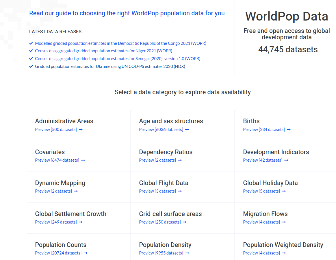 WorldPop is based at the University of Southampton and maps populations across the globe. Since 2013, they have partnered with governments, UN agencies, and donors to produce almost 45,000 datasets, complementing traditional population sources with dynamic, high-resolution data for mapping human population distributions, with the ultimate goal of ensuring that everyone, everywhere is counted in decision-making.