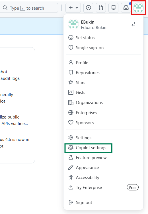 - Go to: GitHub > Settings > Copilot settings