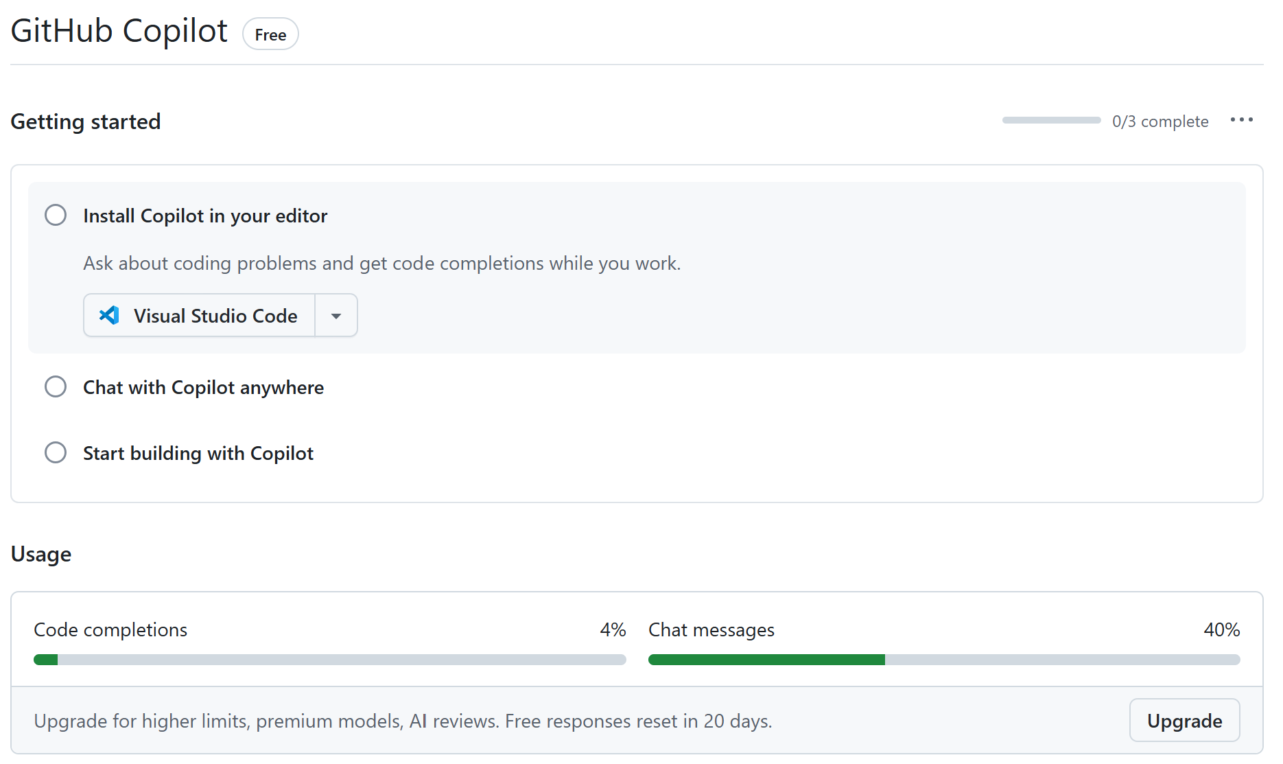 - Scroll down to the “Usage” section to see your usage of premium requests.