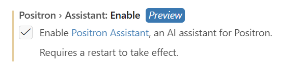 See Enable Positron Assistant for more details.