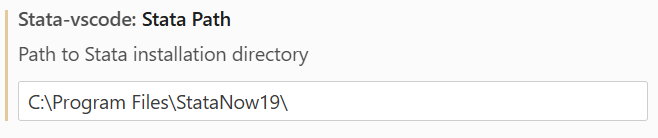 Open stata-vscode.stataPath or press Ctrl+, > search “Stata Path” (or stata-vscode.stataPath), and set it to your Stata executable folder: C:\Program Files\StataNow19\ (for most WB laptops and VDIs). |
