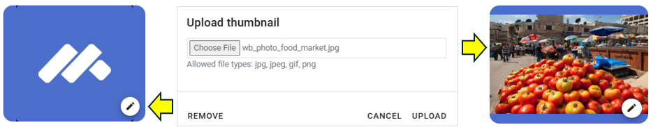 We will use the image itself as a thumbnail. Providing a thumbnail is not required, but recommended. The thumbnail will be displayed in the Metadata Editor project list, and in the NADA catalog if the metadata is published in NADA. Click on the edit icon in the screenshot image, and select the image file when prompted.