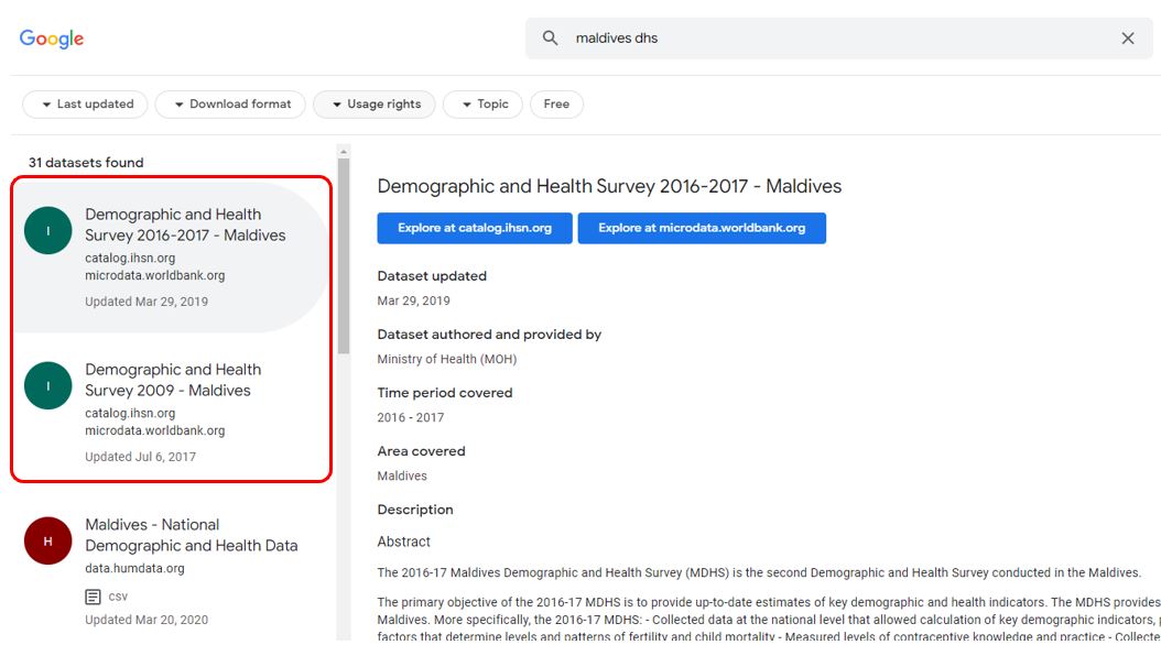 The result - Higher visibility/ranking in Google Dataset Search - The websites catalog.ihsn.org and microdata.worldbank.org are NADA catalogs, which embed schema.org metadata.